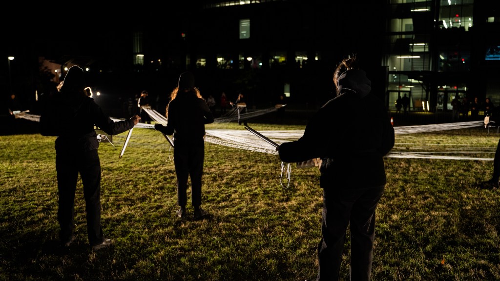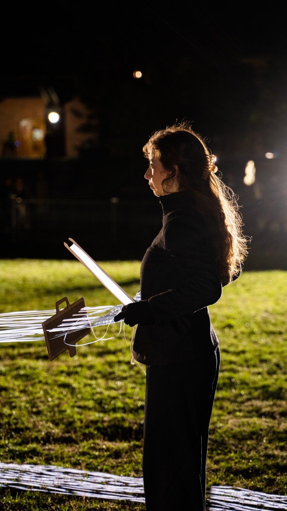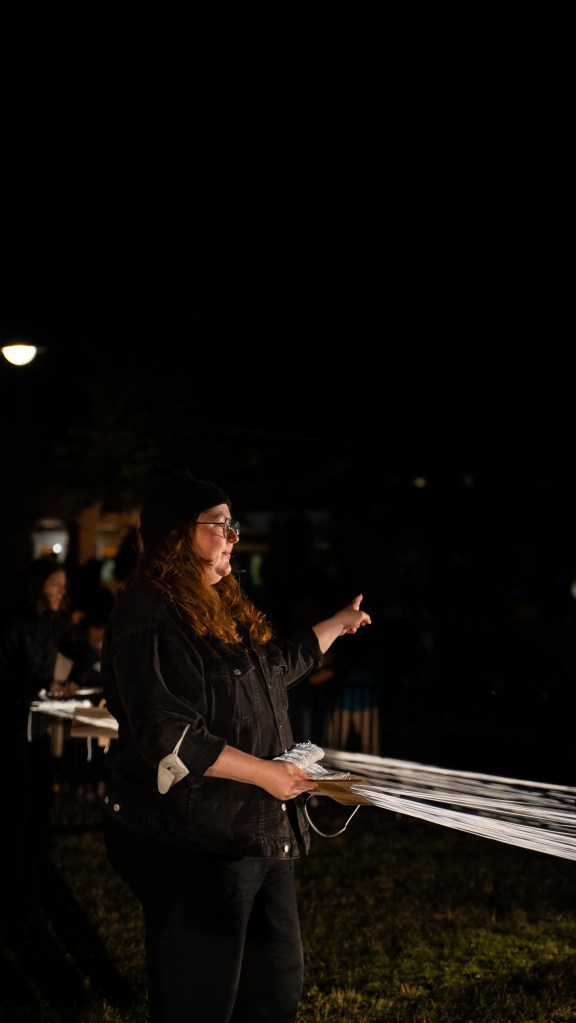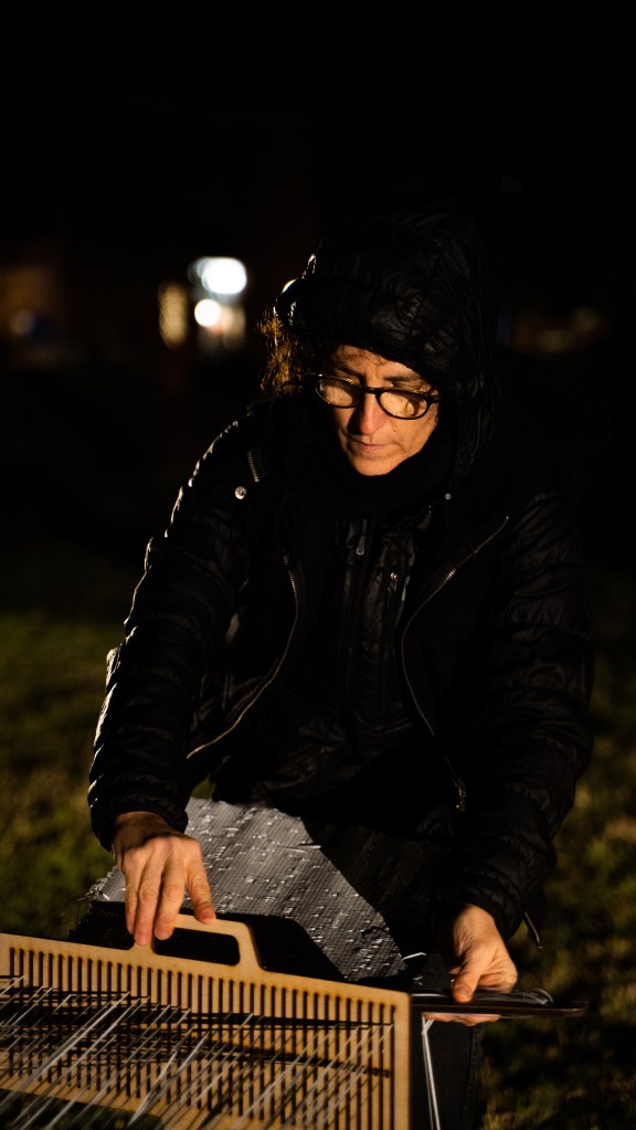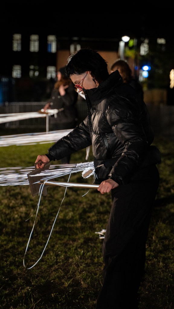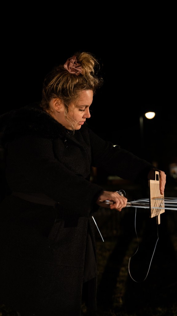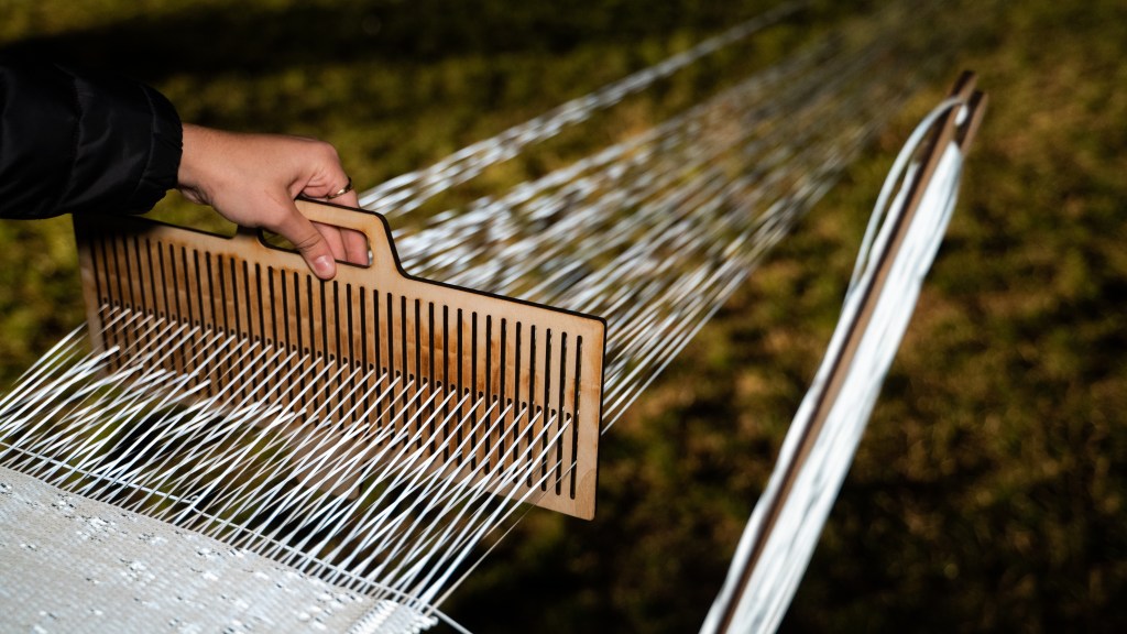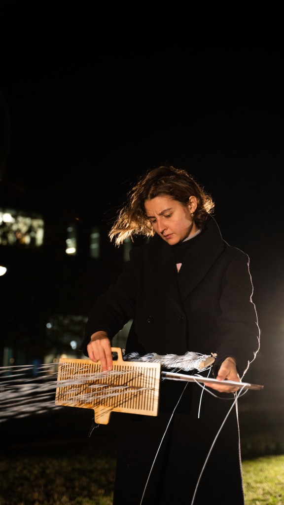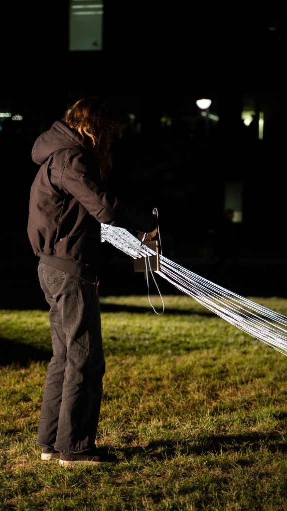 The Soft Walls Collective is a textile arts group that experiments with various weaving techniques. They performed a live weaving event during Nuit Blanche 2022 and commissioned dozens of textile artists to simultaneously weave a textile piece using reflective thread and hand-held looms.